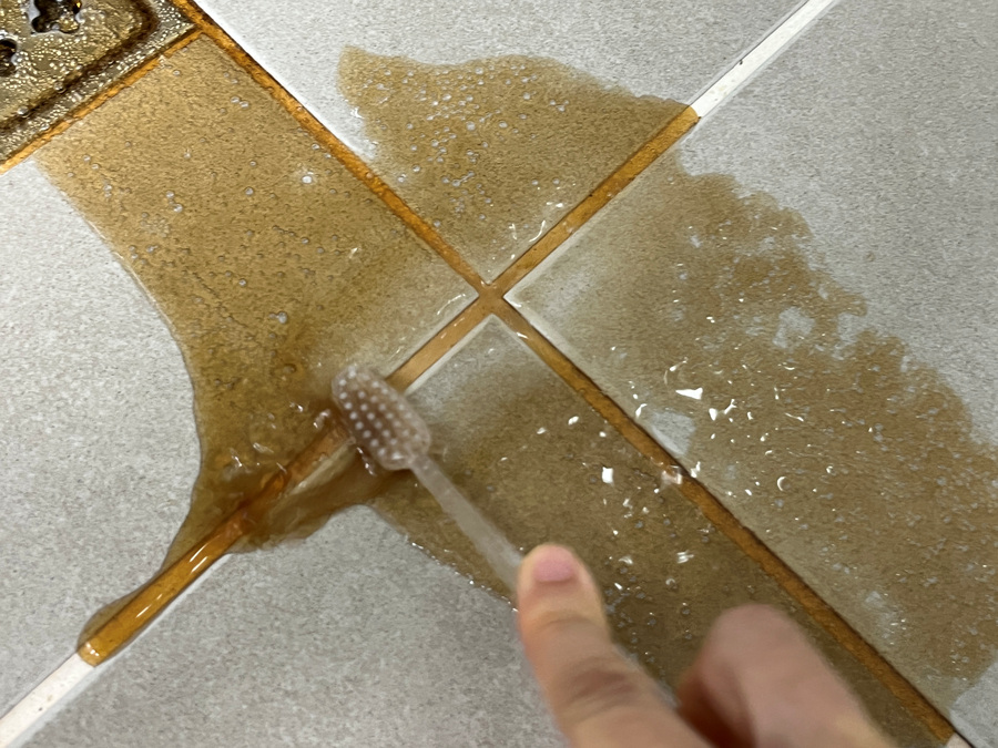 - 1시간 방치 후 청소 솔로 문질러 닦기
