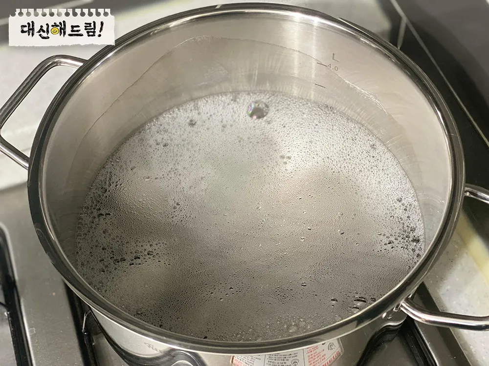 - 냄비나 프라이팬에 물을 가득 채운 후 식초를 2~3스푼 넣습니다.